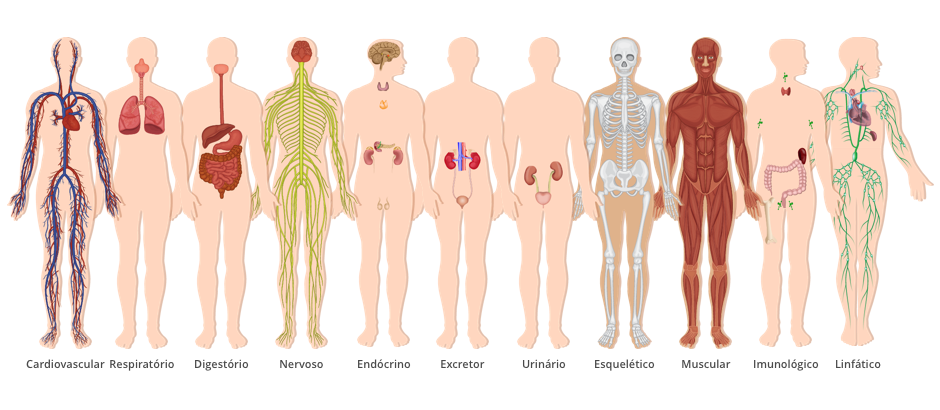 - Cardiovascular: Responsável por bombear e circular o sangue transportando água, nutrientes e células para os orgãos e tecidos, além de remover impurezas.